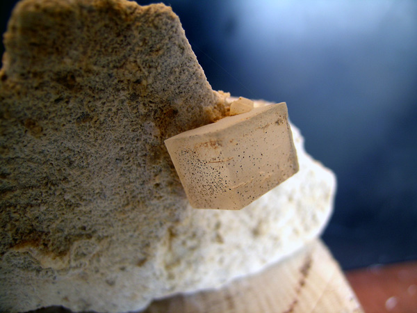 parfois de joli quartz. Mais ce qui est le plus intéressant c'est que dans la baryte même, juste au contact avec la roche calcaire, se sont cristallisés de jolis cubes de galène parfois même